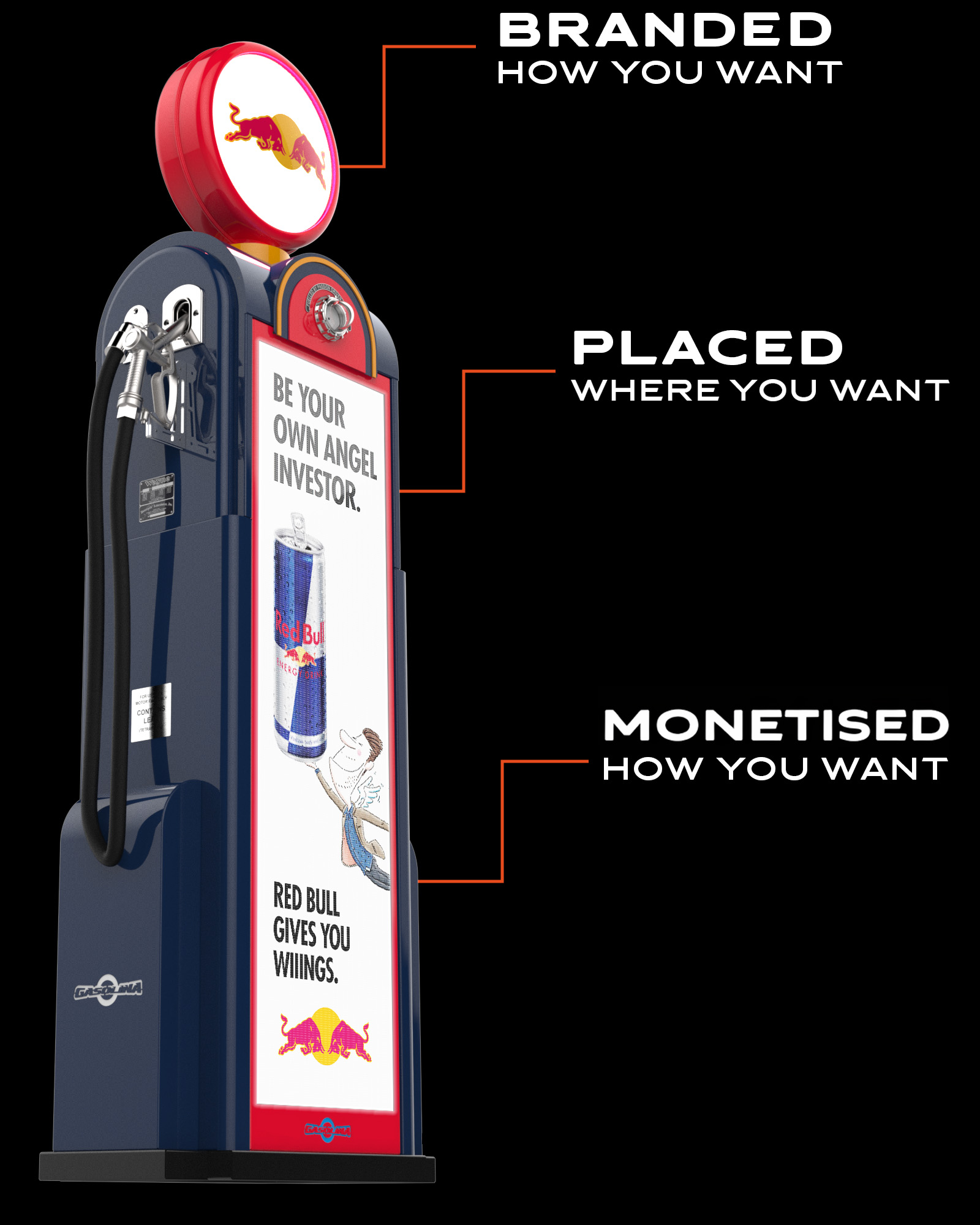 - We install and operate Gasolina’s high-impact ad displays in your venue, fully funded by advertising.